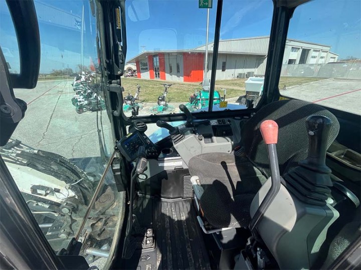 Inside the cab of a Bobcat compact (mini) excavator, you have plenty of space to work comfortably. Designed for all-day comfort. Wide suspension seat. More floorspace.