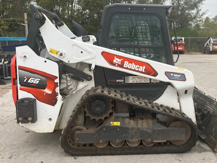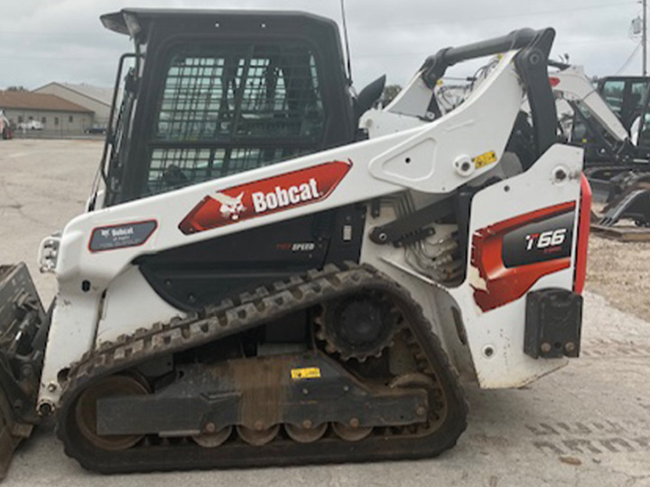The 2022 Bobcat T66 compact track loader is designed to power through tough jobs. This machine features a 74 hp engine and a vertical-lift-path design. With a 2,450 lb rated operating capacity, it’s ideal for loading, grading, digging, and material handling. The redesigned Bobcat engine improves fuel efficiency, and the cast-steel lift arms increase durability and lifting performance. The cab offers a sealed and pressurized environment, with available heated air-ride seat and automatic Heat and AC. It also has a user-friendly display that provides machine diagnostics and performance tracking.